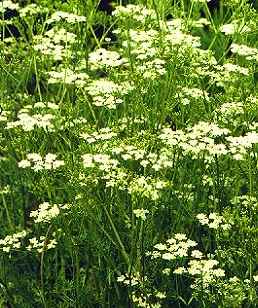 ما الزهرة فخضراء على شكل مظلة دائرية ، وذلك في بداية تكونها ، تحمل حبوباً صغيرة خضراء . وتتفرع الزهرة إلى مجموعات ، كل مجموعة تحمل كماً من الحبوب ، وفي أواخر فصل الصيف تبدأ في الاصفرار ، وتكبر الحبوب التي تحملها مع الاحتفاظ بلونها الأول ، وهذه الحبوب مضلعة الشكل لها رائحة جميلة وحجمها كحجم حبوب الشَّمَر .