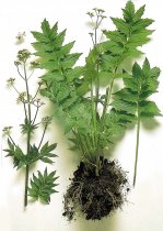 الثمرة تاجية لها صرة ريشية. جذور النبات قصيرة له فسلات تحت الأرض ورائحته كريهة