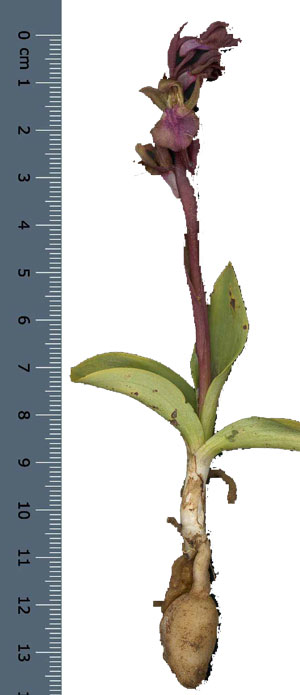 الأزهار فلونها أرجواني.الجزء المستخدم من السحلب هي الدرنات الموجودة تحت سطح