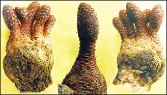 تشبه يد الانسان ملتصقة بالطرثوث من اسفله ولها كف واصابع مثل اصابع الانسان وعددها