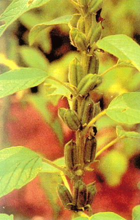 indica من الفصيلة السمسمية Pedalinacea ونبات السمسم نبات عشبي حولي يصل ارتفاعه